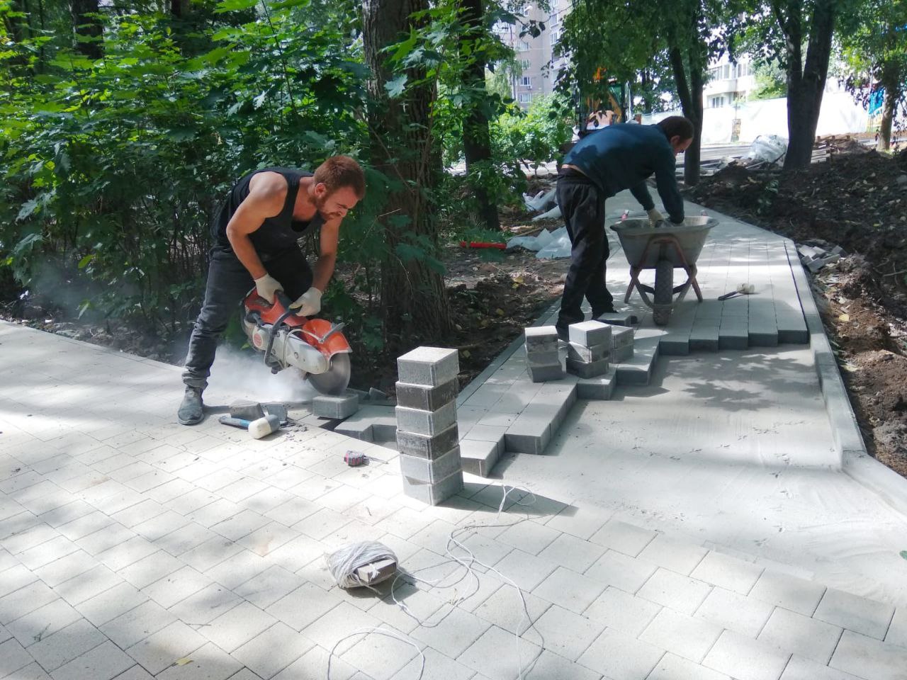Работа идёт в соответствии с графиком. Завершение благоустройства запланировано на конец августа.