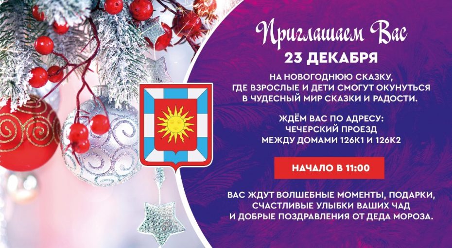 Уважаемые жители поселения Воскресенское! В эту субботу, 23 декабря 2023 года, в 11:00 приглашаем вас на Новогоднюю сказку.