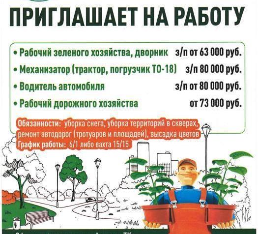 рабочий зеленого хозяйства, дворник – заработная плата от 63 000 рублей;