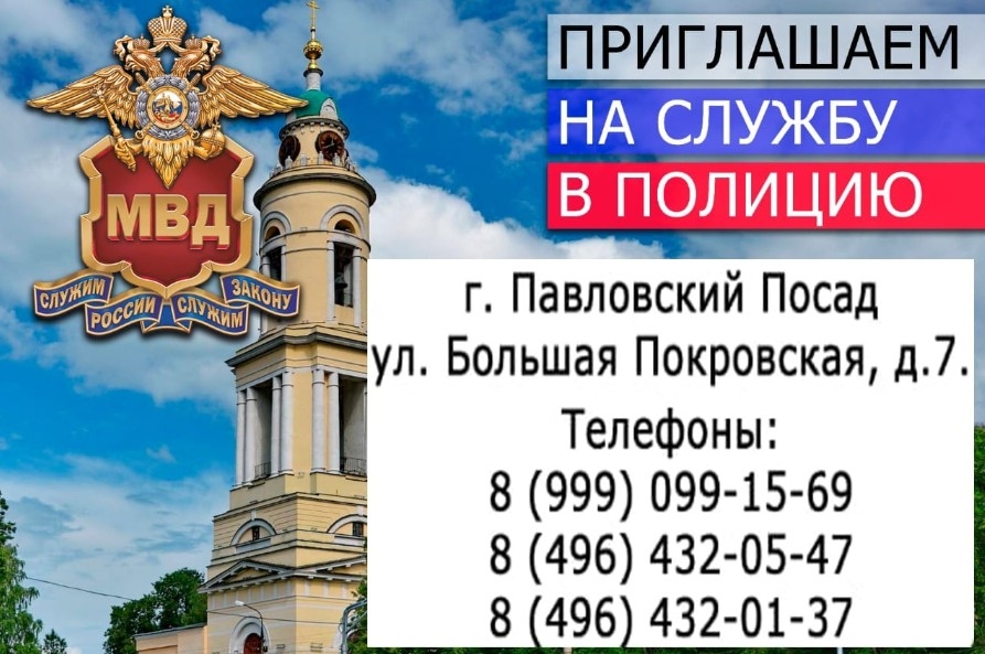 Отдел МВД России «Павлово-Посадский» приглашает на службу в полиции!