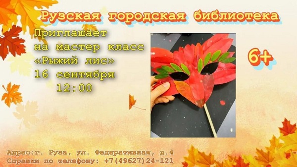 Под руководством библиотекаря ребята Рузского городского округа создадут поделку из бумаги в виде маски лиса или лисички.