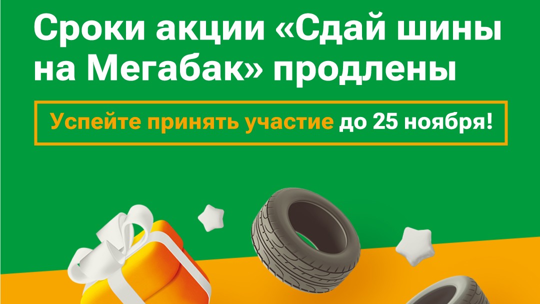 Акция «Сдай старые шины на Мегабак» продлена до 25 ноября 2024 года. Это решение было принято в связи с высоким интересом граждан к утилизации старых автомобильных покрышек.
