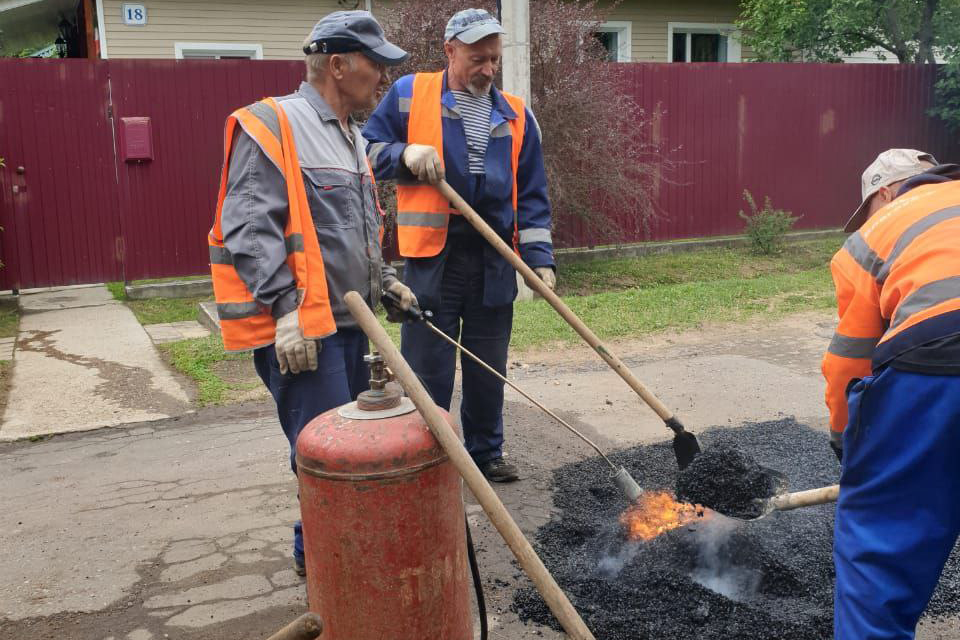 17 июля рабочие проводили ямочный ремонт в деревне Игнатьево. Ямы засыпали крошкой в поселке Тучково на улице Лебеденко на повороте к заводу КСИМ, в деревне Молодиково.