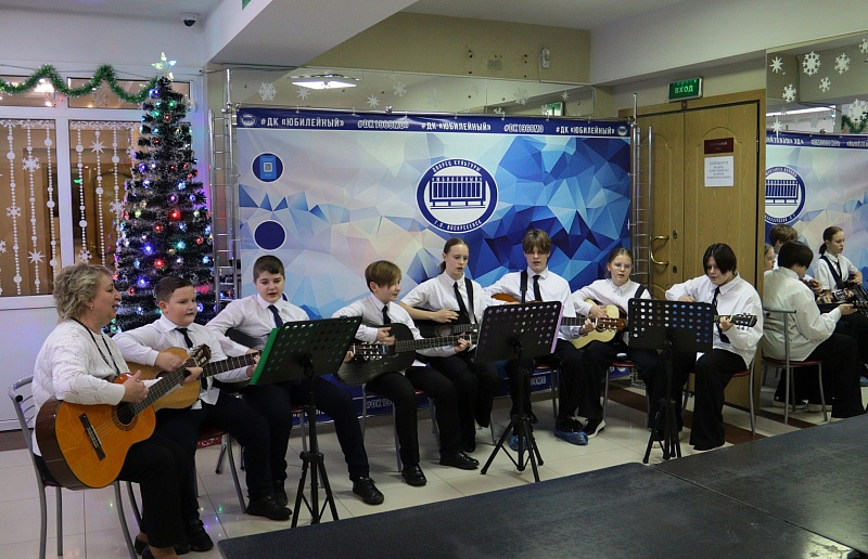 Сказочную атмосферу дополнили песни о зиме, которые исполнили воспитанники младшей группы студии игры на гитаре «Музыкальная лаборатория» (руководитель Оксана Белобородова).