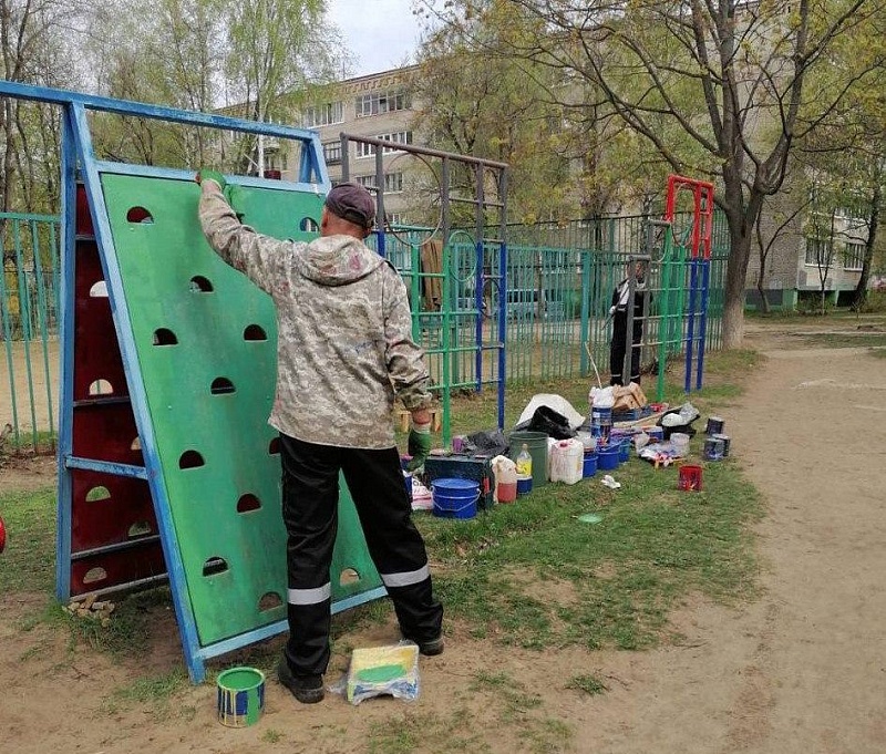 Работники МБУ «БиО» приводят в порядок дворы, общественные пространства, улично-дорожную сеть. Сегодня проводилась уборка проезжей части, ямочный ремонт, на детских игровых комплексах починили сломанные игровые элементы.