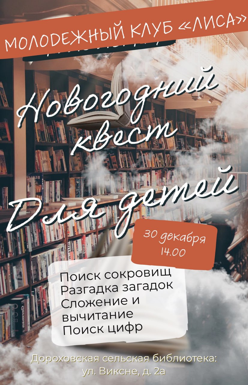 30 декабря в Дороховской поселковой библиотеке Рузского городского округа состоится новогодний квест для детей.