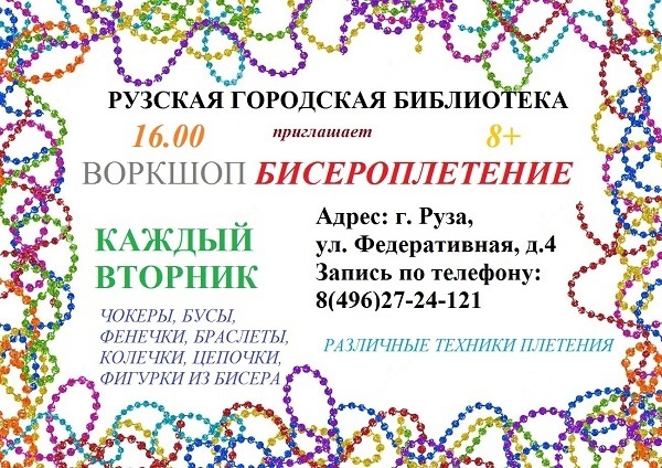 В Рузской городской библиотеке 10 октября в 16 часов состоится мастер-класс по бисероплетению.