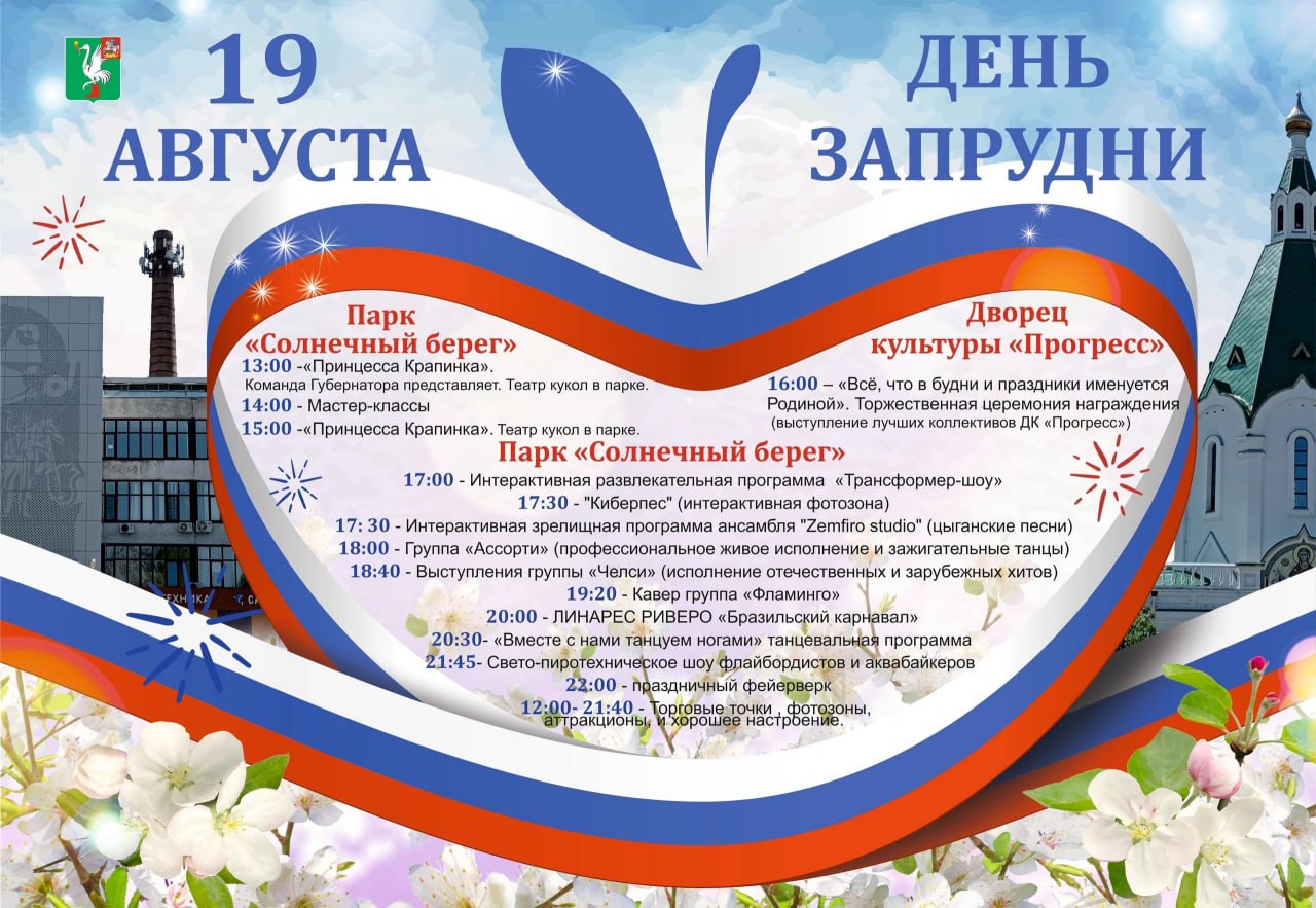 19 августа в Талдомском округе с размахом отметят День поселка Запрудня. Праздник пройдёт в ДК «Прогресс» и парке «Солнечный берег». Вас ожидает настоящий взрыв развлечений и великолепных программ, атмосфера веселья и радости.
