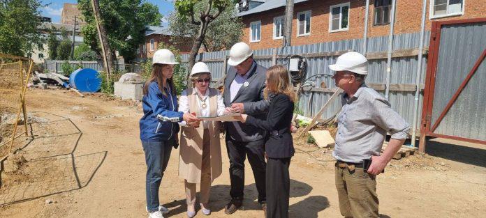 Заместитель главы администрации — председатель комитета по строительству и архитектуре Елена Лебеденко совместно с первым заместителем председателя Совета депутатов «Единая Россия» Любовью Ушанёвой, депутатом горсовета, членом фракции «Единой России» Алексеем Никулиным проверили этап строительства детского сада на 240 мест, расположенного на улице Школьной, д. 21а.